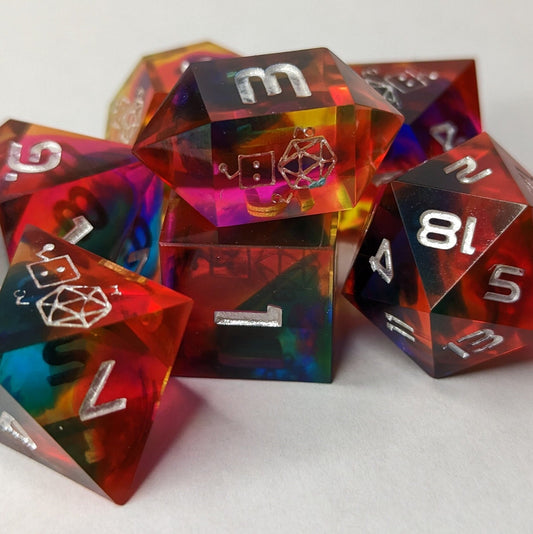 Dice Set Custom - Over the Rainbow Sunset - Handmade resin dice for D&D and Roleplaying - Set of 7 polyhedral sharp edge diceRegular price $90.00 CADRegular priceUnit price / per-