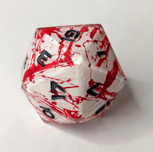 Jumbo D20 Custom Dice - Blood Splatter Shell Insert Dice - Handmade resin dice for D&D and Roleplaying - Chonk D20 Sharp Edge DieRegular price From $50.00 CADRegular priceUnit price / per-