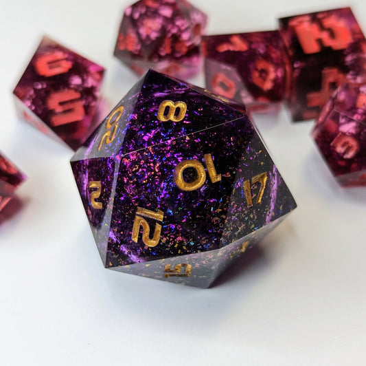 Jumbo D20 Custom Dice - Purple Liquid Core - Handmade resin dice for D&D and Roleplaying - Chonk D20 Sharp Edge DieRegular price $50.00 CADRegular priceUnit price / per-