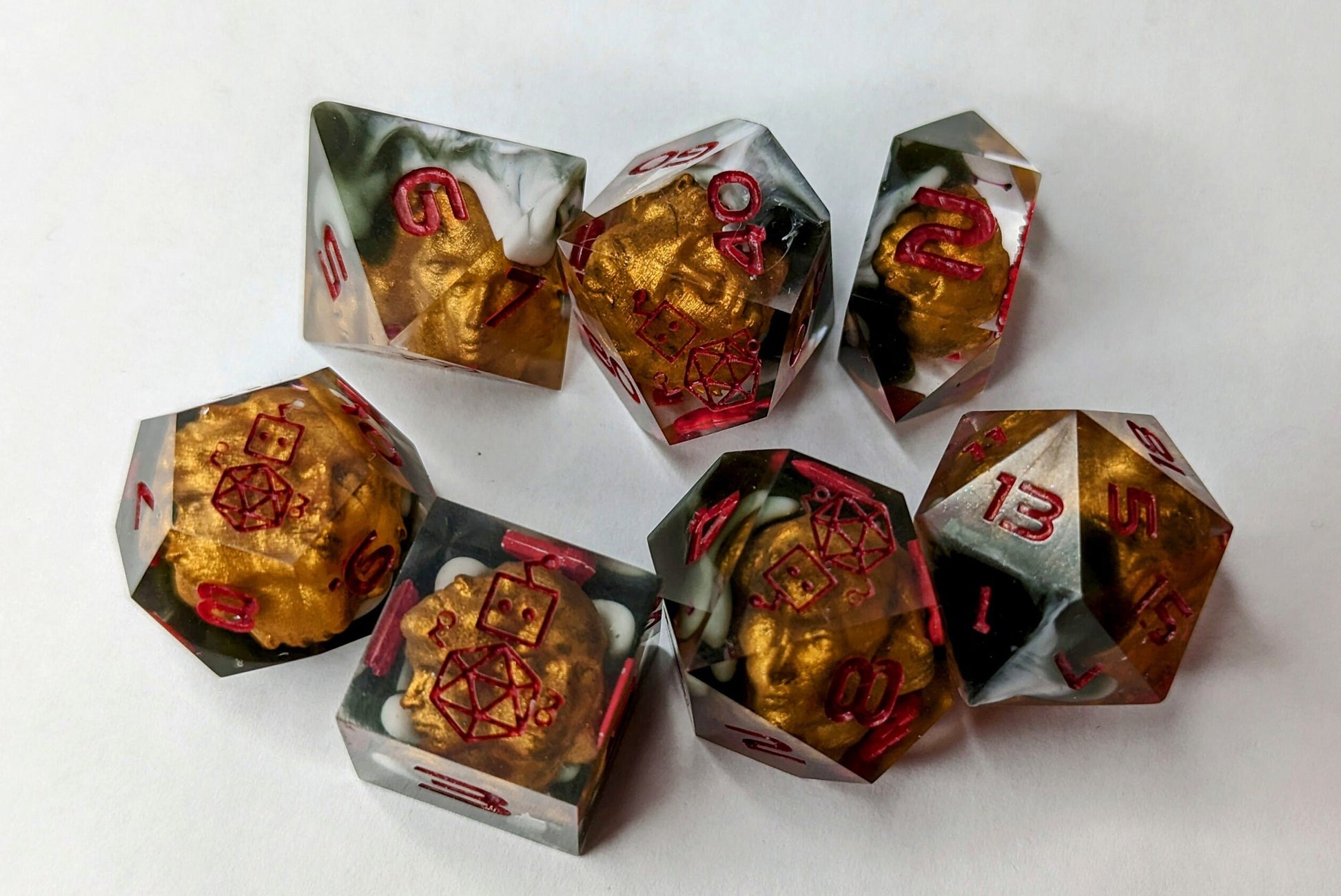 Dice Set Custom - Exalted Orb Path of Exile - Handmade resin dice for D&D and Roleplaying - Set of 7 polyhedral sharp edge dice