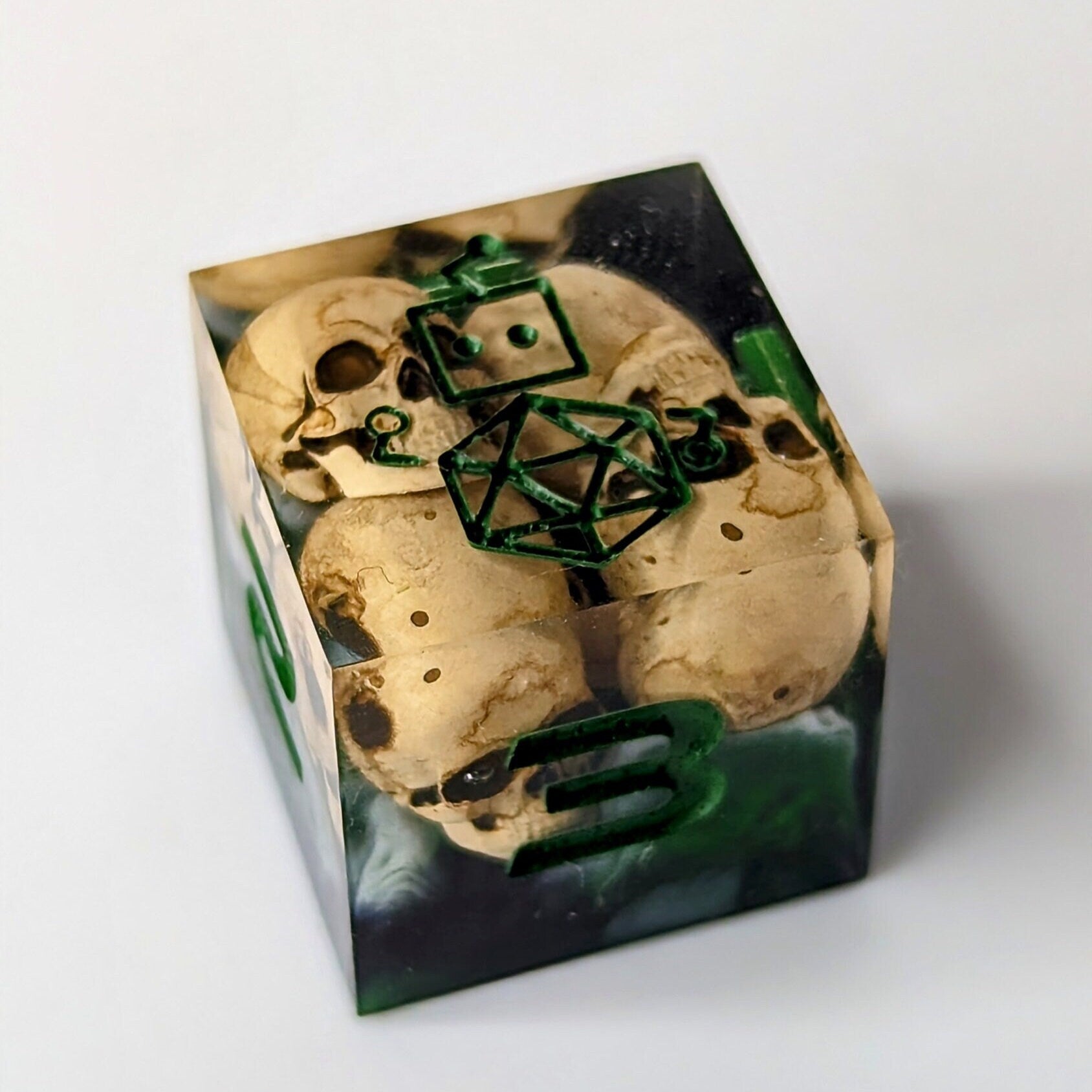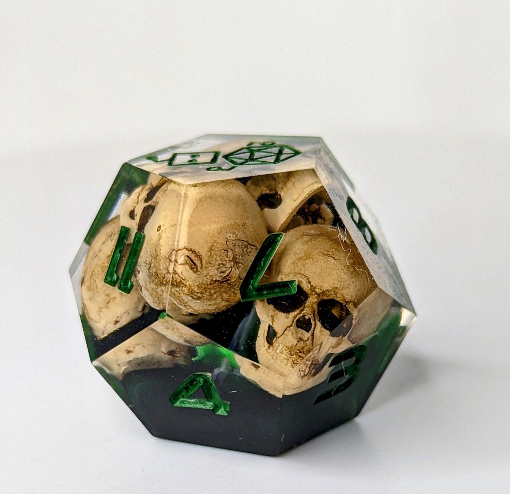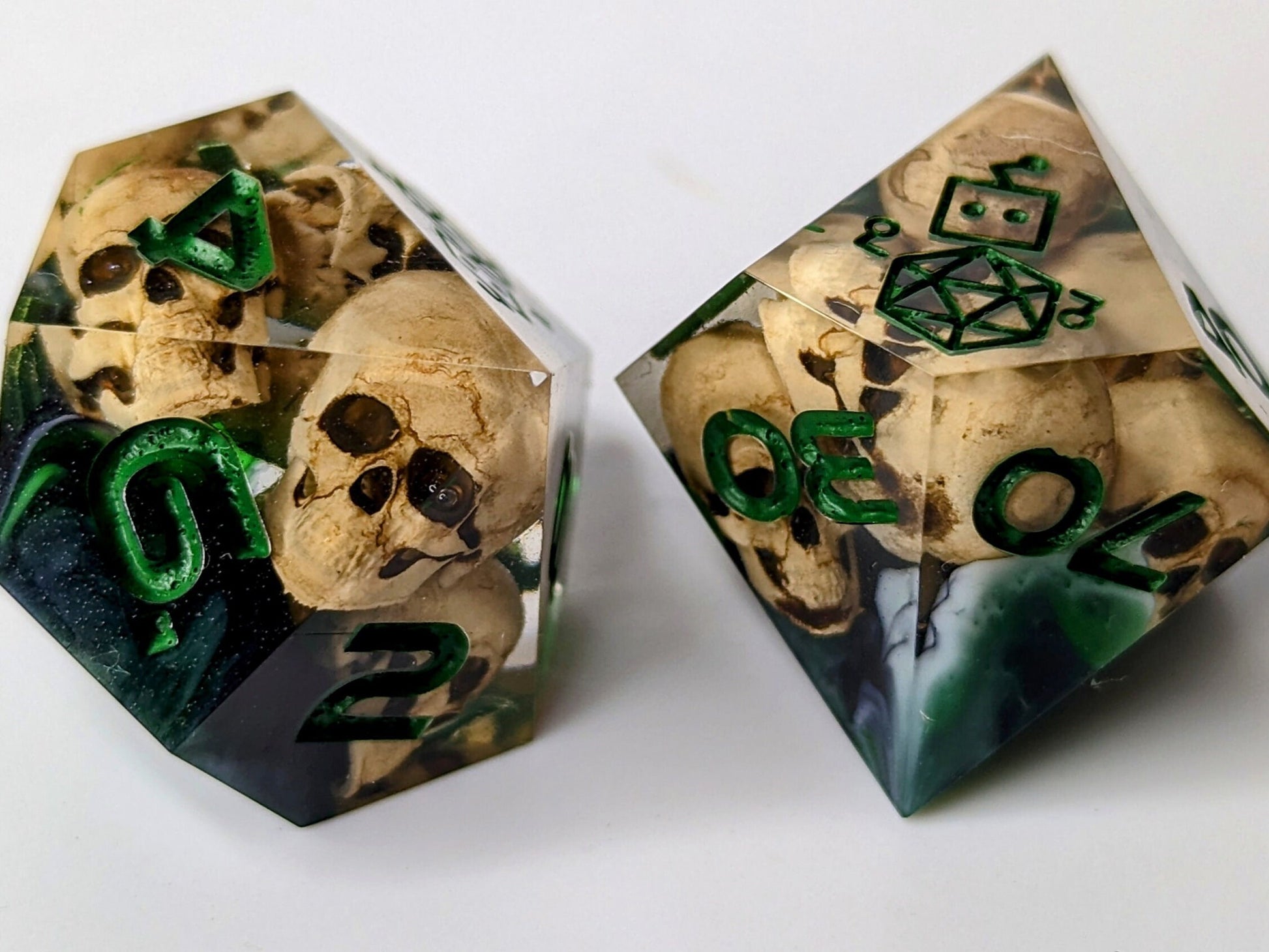Dice Set Custom - Witch Skull - Handmade resin dice for D&D and Roleplaying - Set of 7 polyhedral sharp edge dice