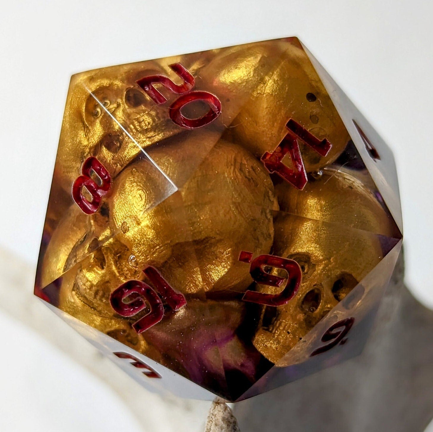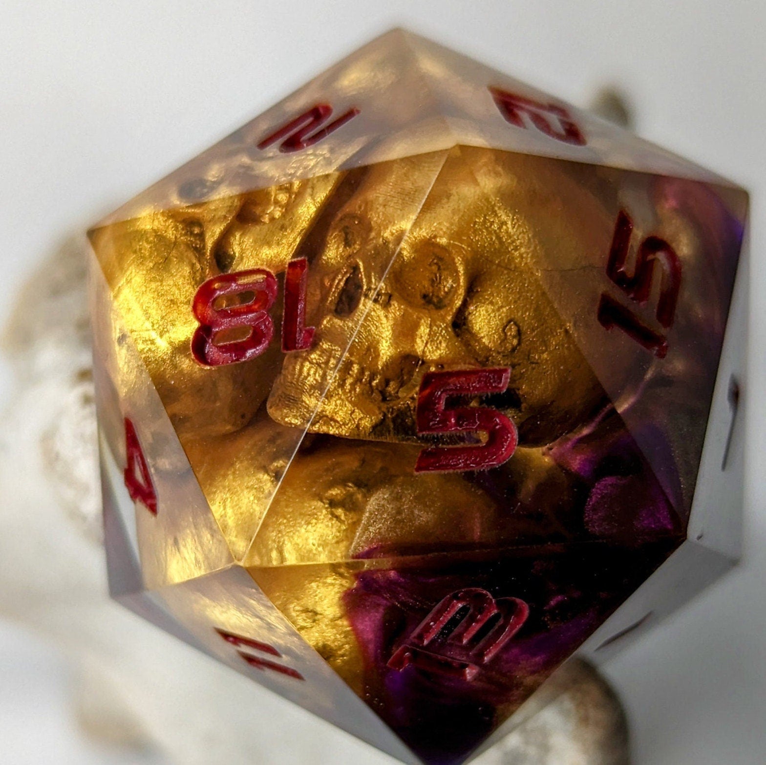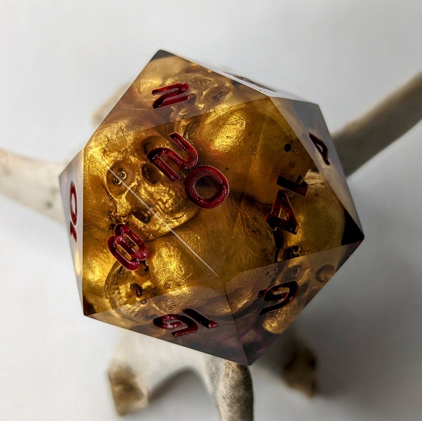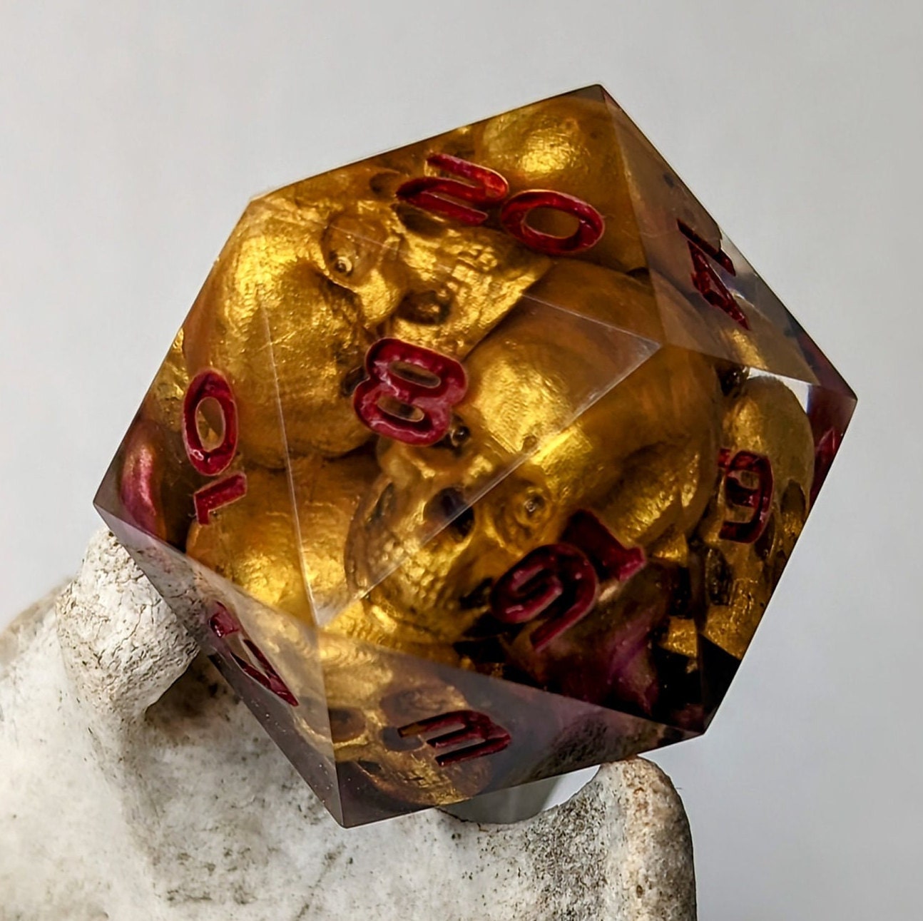 Jumbo D20 Custom Cursed Idol Golden Skull Dice - Custom made resin dice for D&D and Roleplaying - Chonk D20 Sharp Edge Die