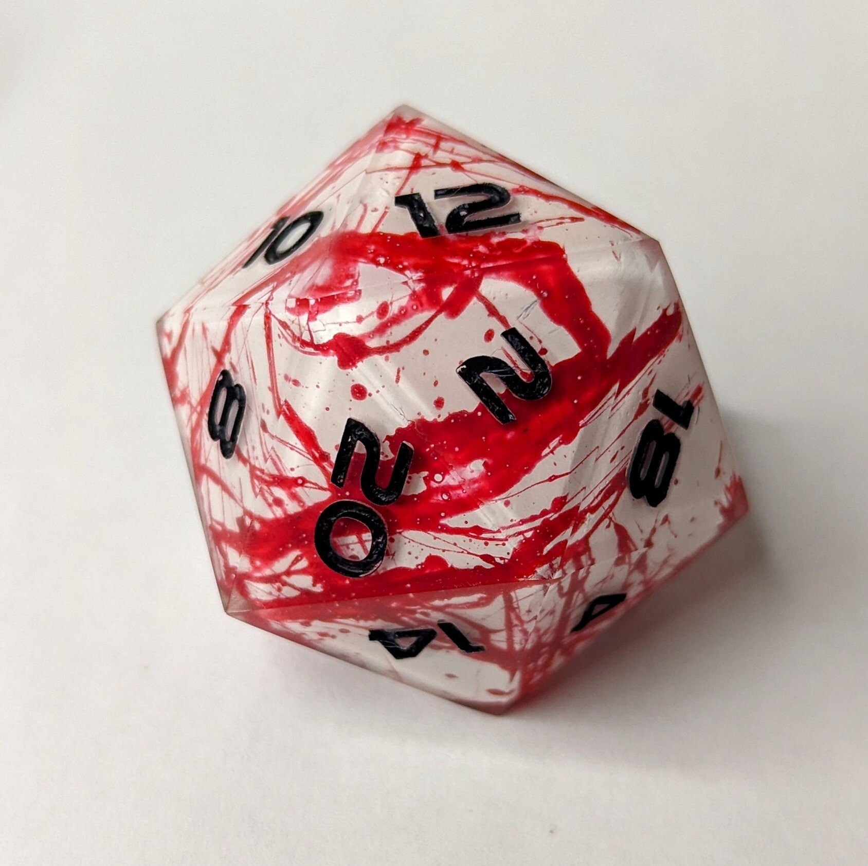 Jumbo D20 Custom Dice - Blood Splatter Shell Insert Dice - Handmade resin dice for D&D and Roleplaying - Chonk D20 Sharp Edge Die