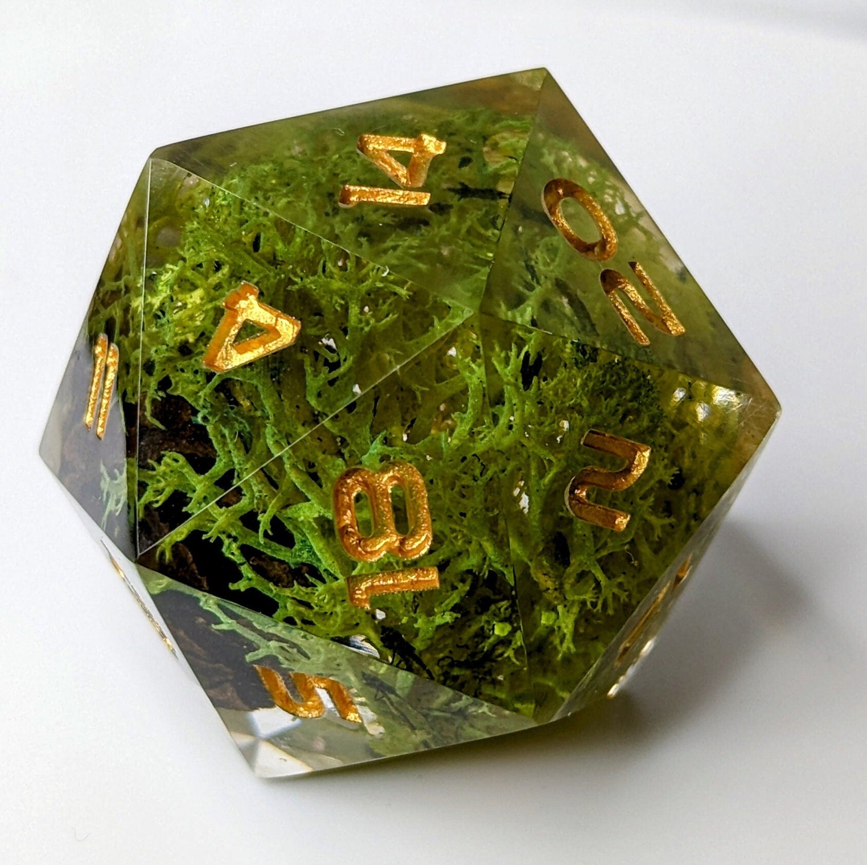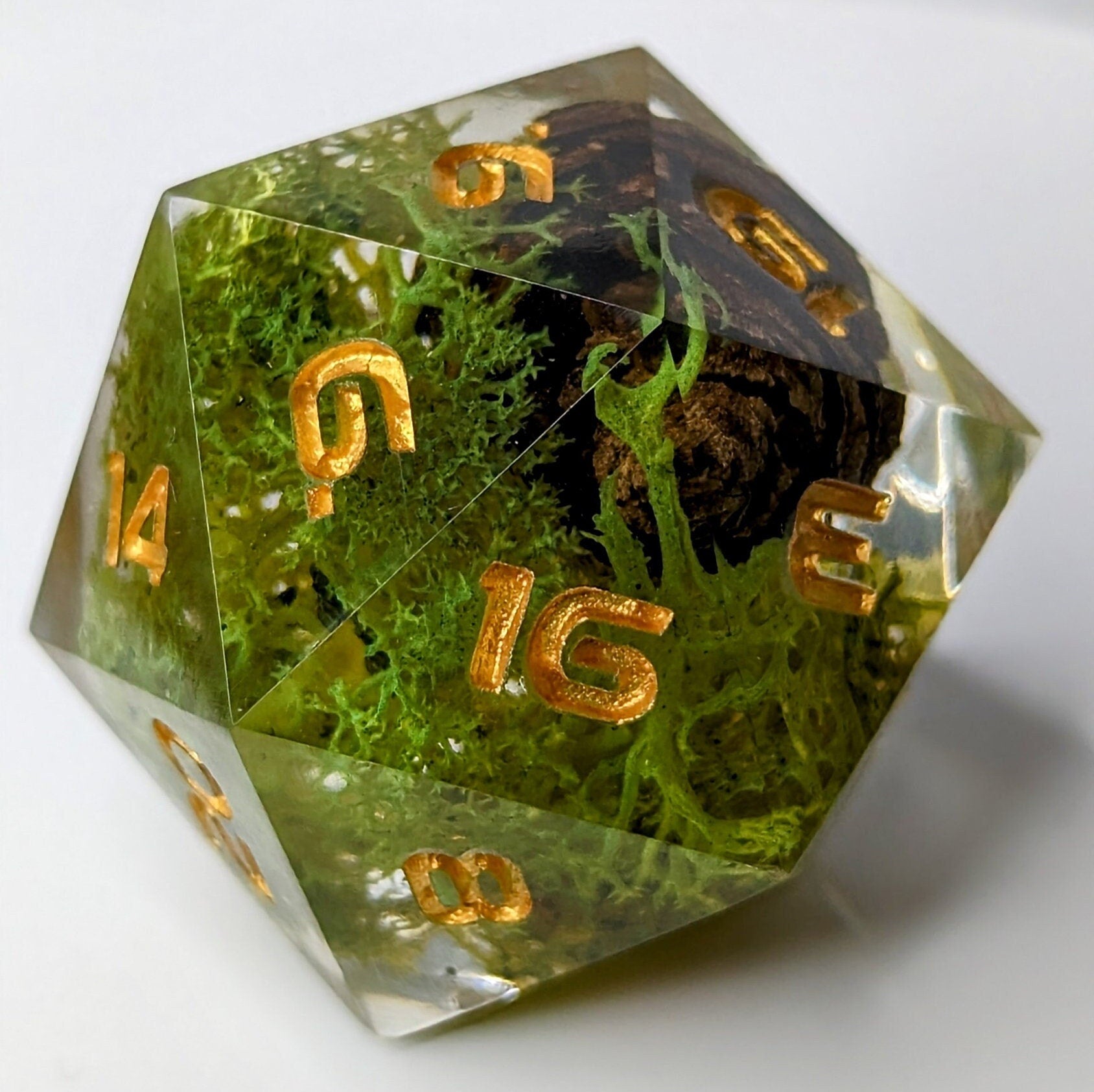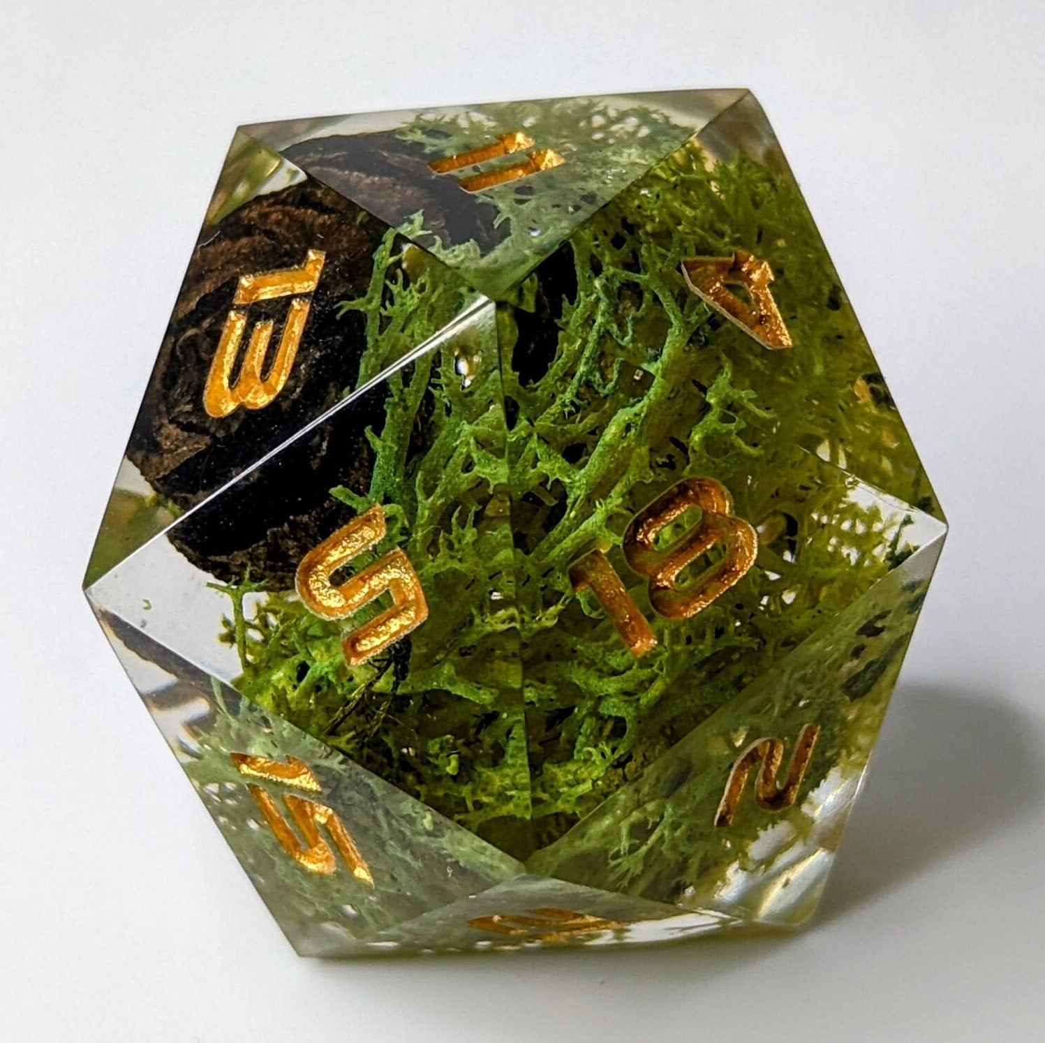 Jumbo D20 Custom Dice - Forest Ranger - Handmade resin dice for D&D and Roleplaying - Chonk D20 Sharp Edge Die