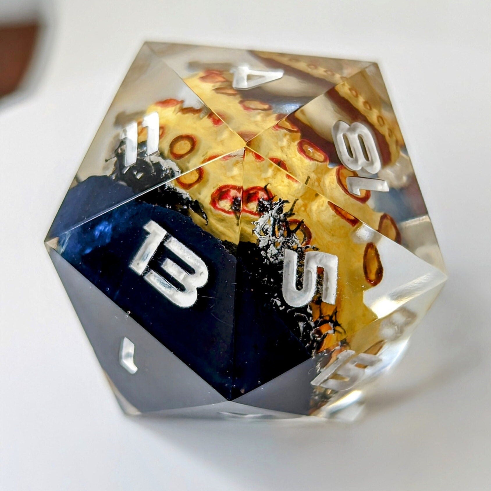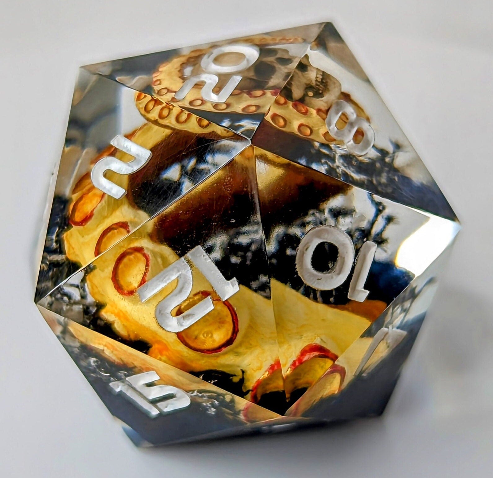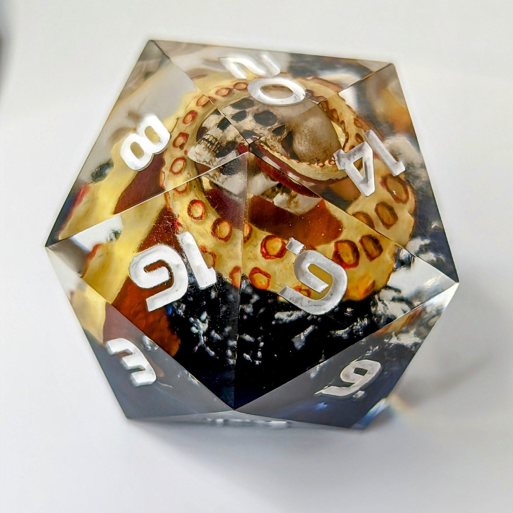 Jumbo D20 Custom Dice - Kraken Tentacle Skull - Handmade resin dice for D&D and Roleplaying - Chonk D20 Sharp Edge Die