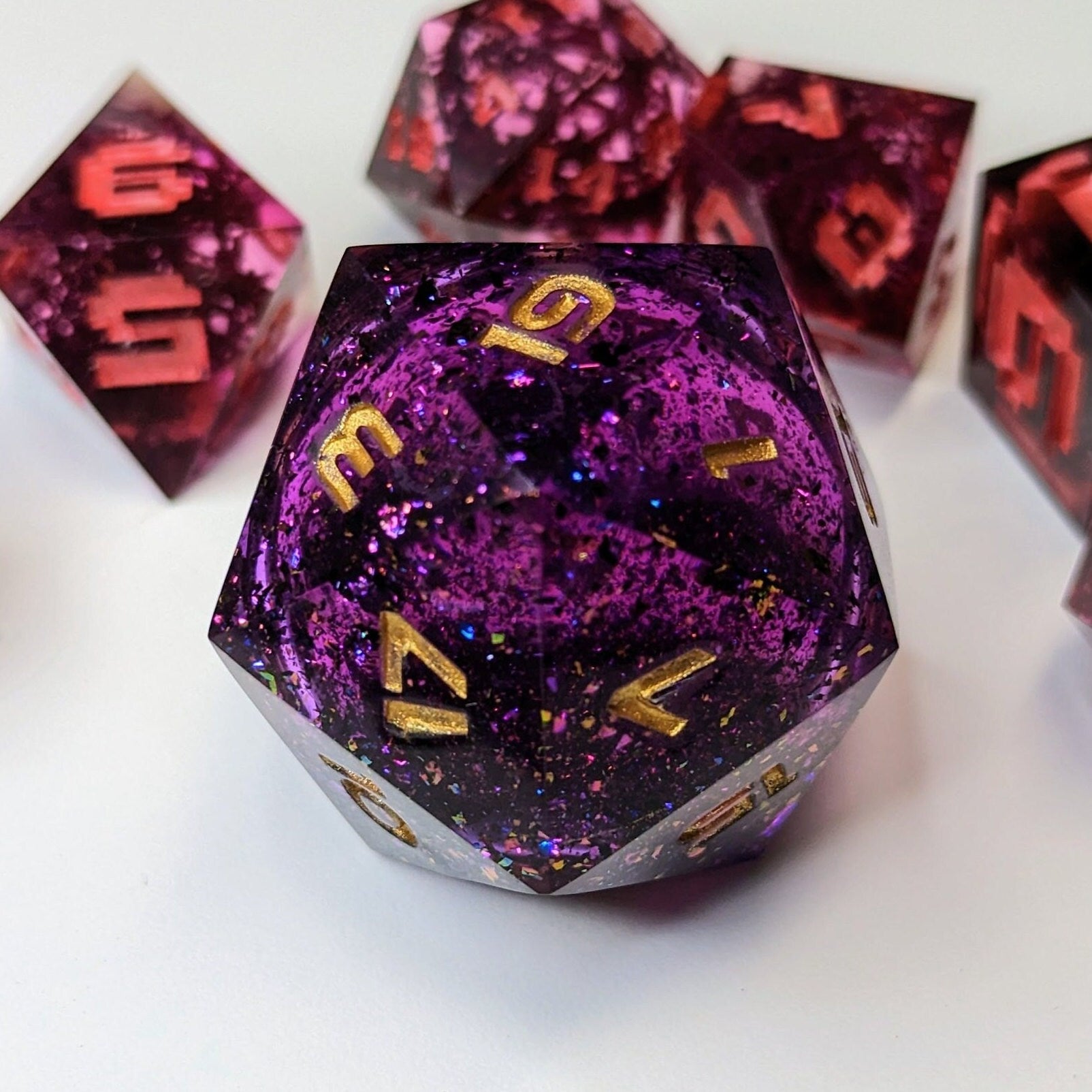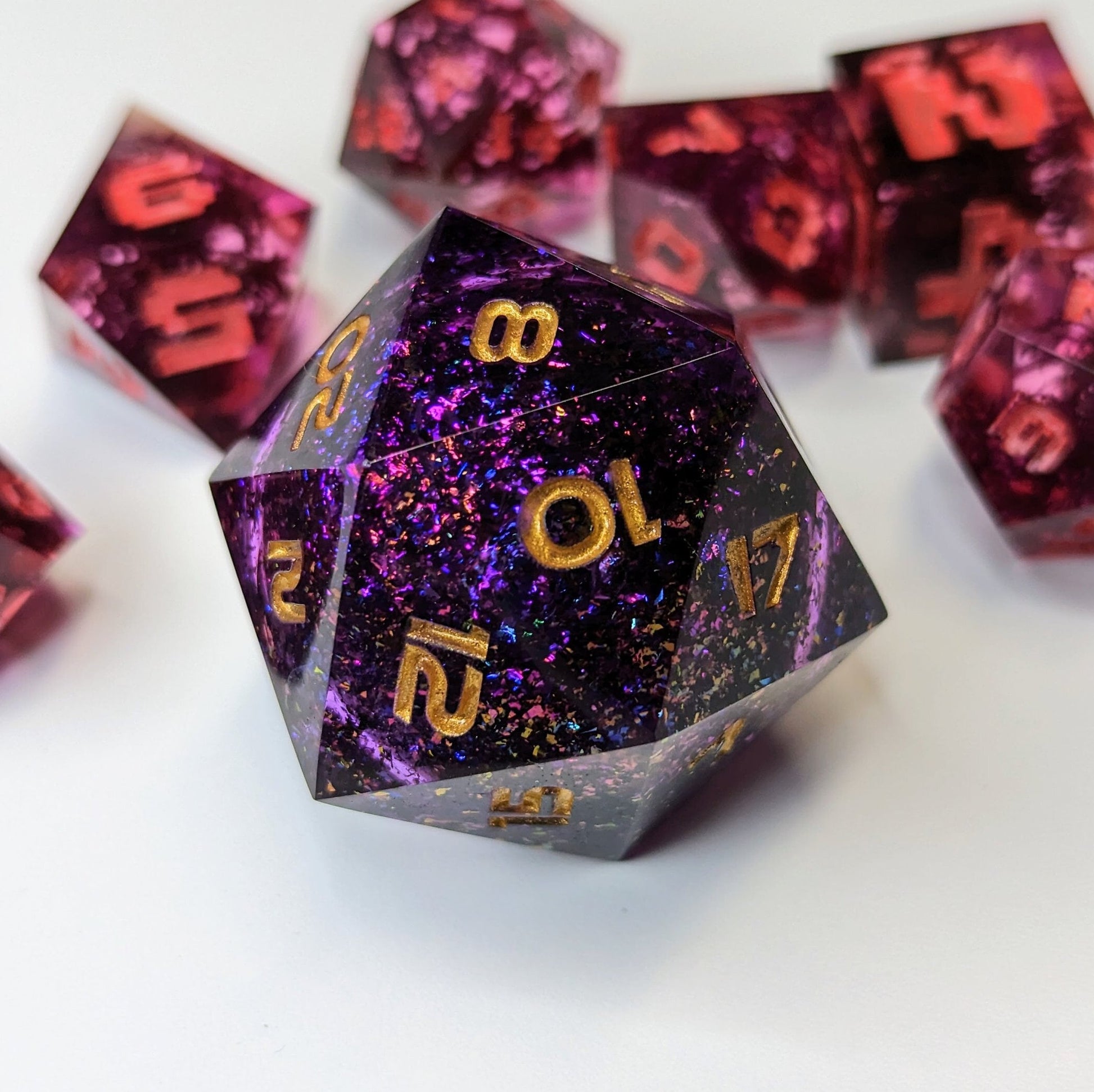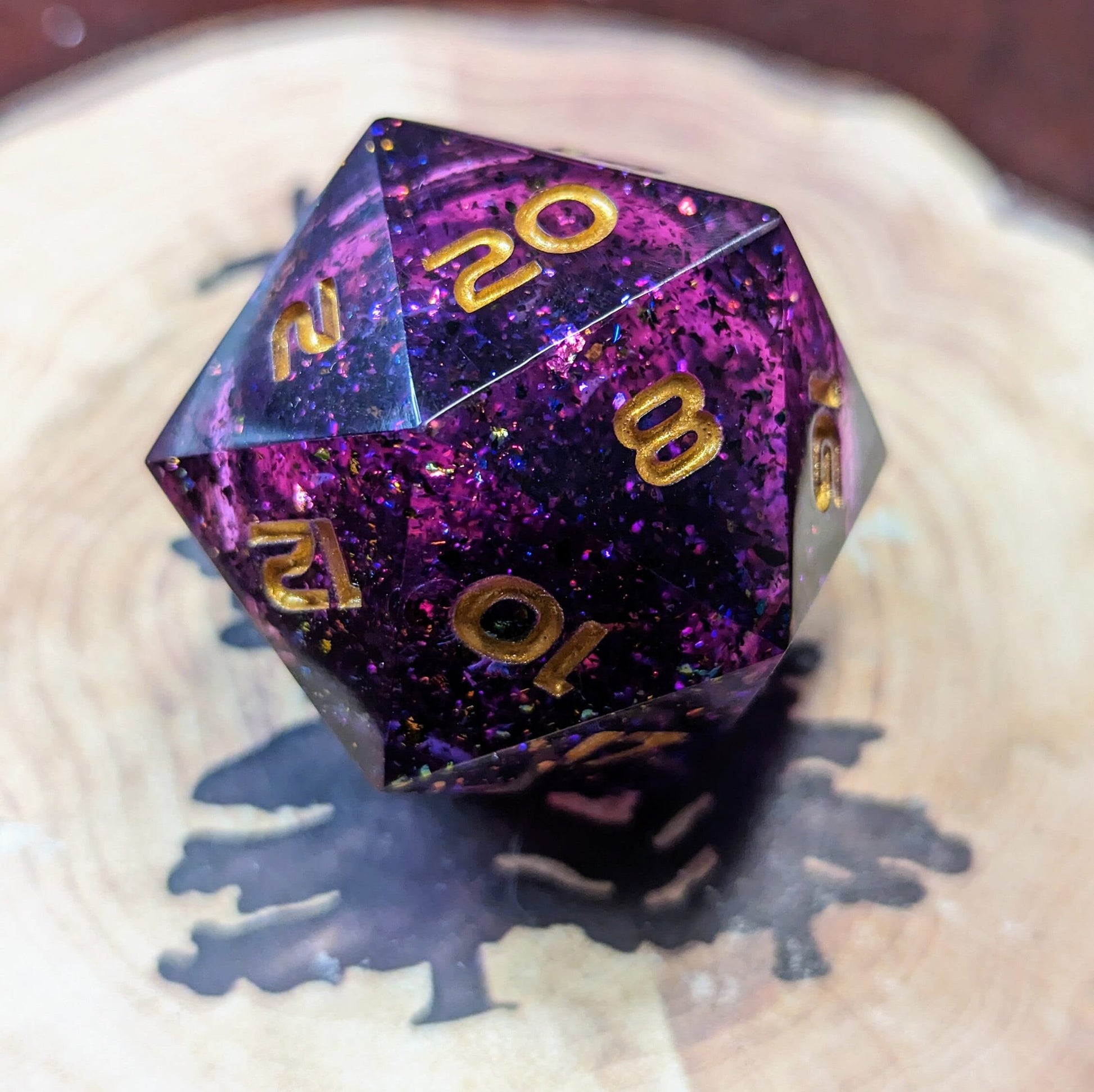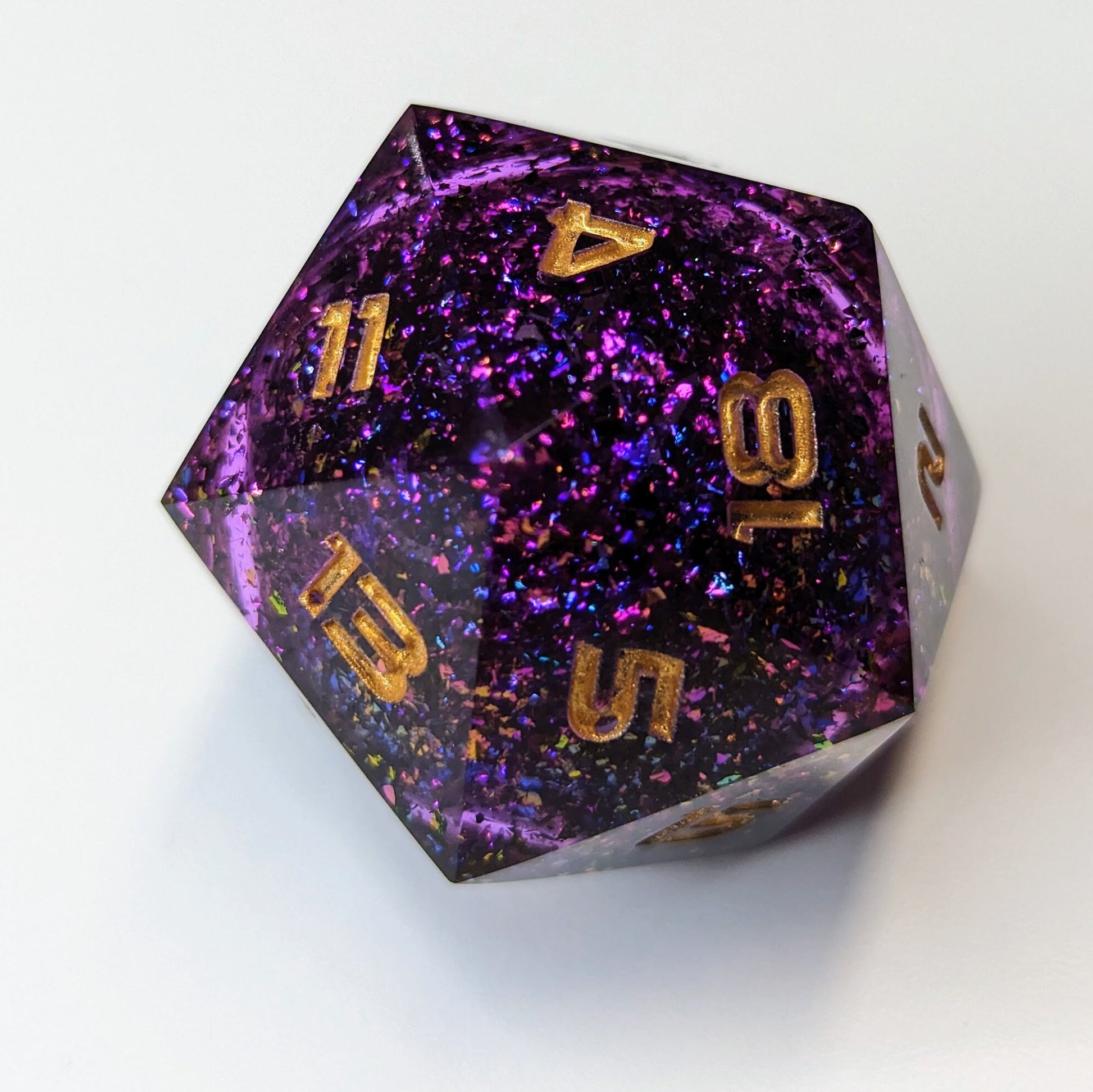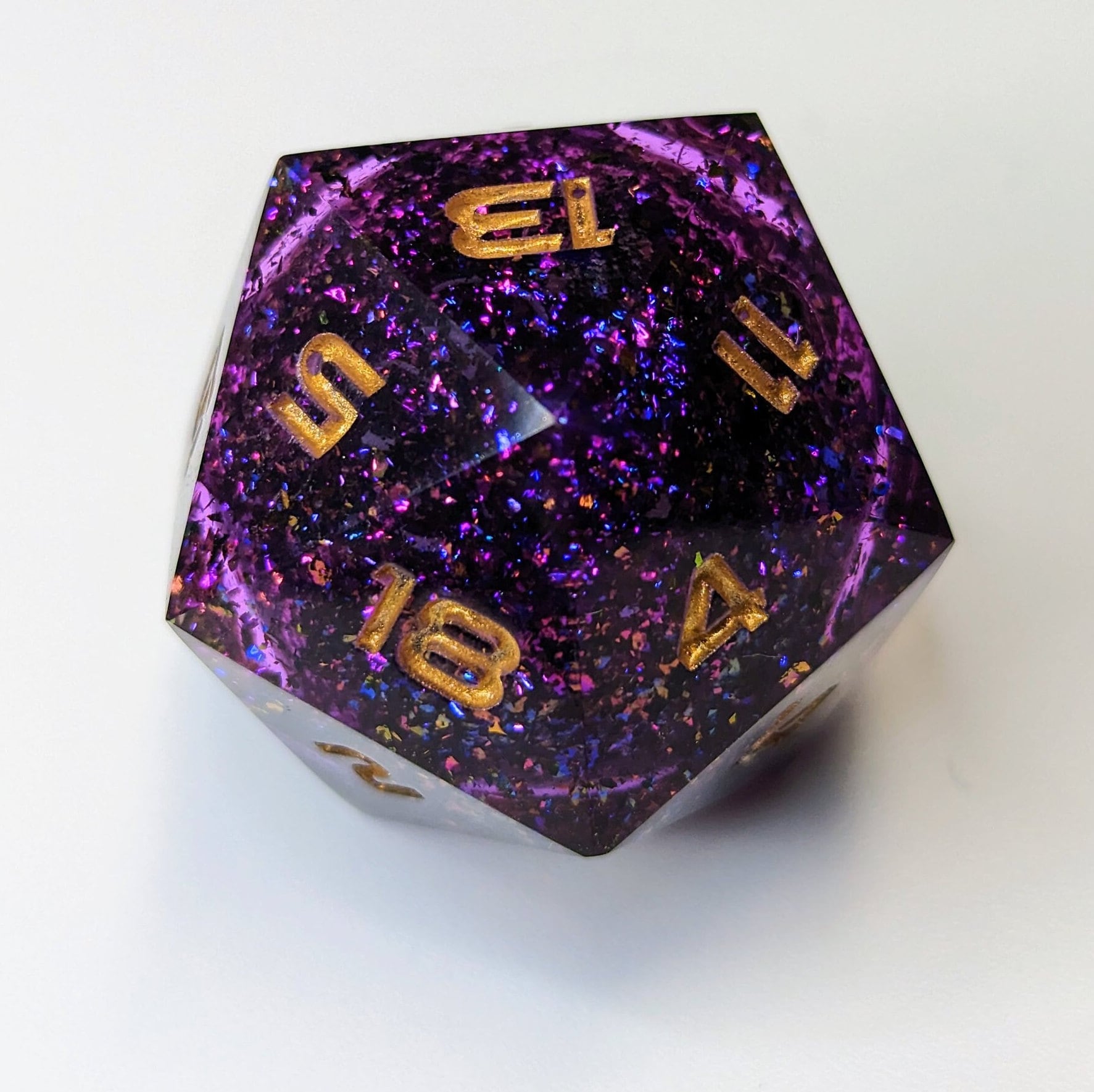 Jumbo D20 Custom Dice - Purple Liquid Core - Handmade resin dice for D&D and Roleplaying - Chonk D20 Sharp Edge Die